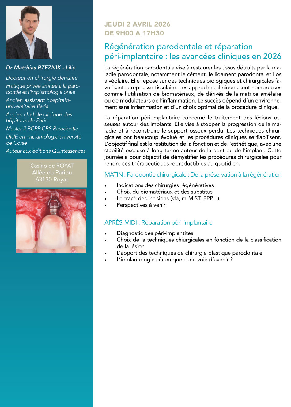16 janvier 2014 Traitements orthodontiques accélérés par chirurgie parodontale mini invasive – 20 mars 2014 Greffe d’Os Humain de Banque, quelesl réalités, quel futur