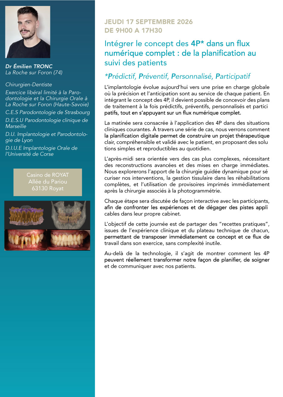 Depuis 2002, la SFPIO Auvergne organise des manifestations de formation continue à destinations des chirurgiens-dentistes qui souhaitent se tenir informer des nouvelles pratiques et désirent découvrir, apprendre et maîtriser de nouvelles techniques.